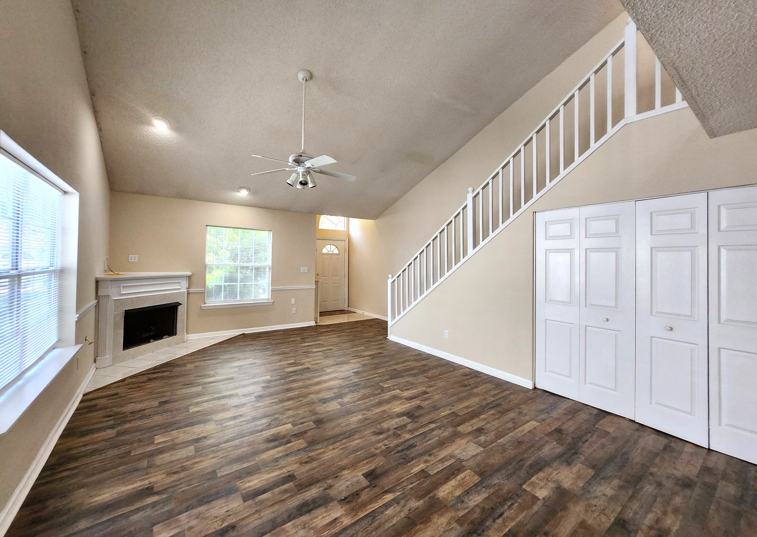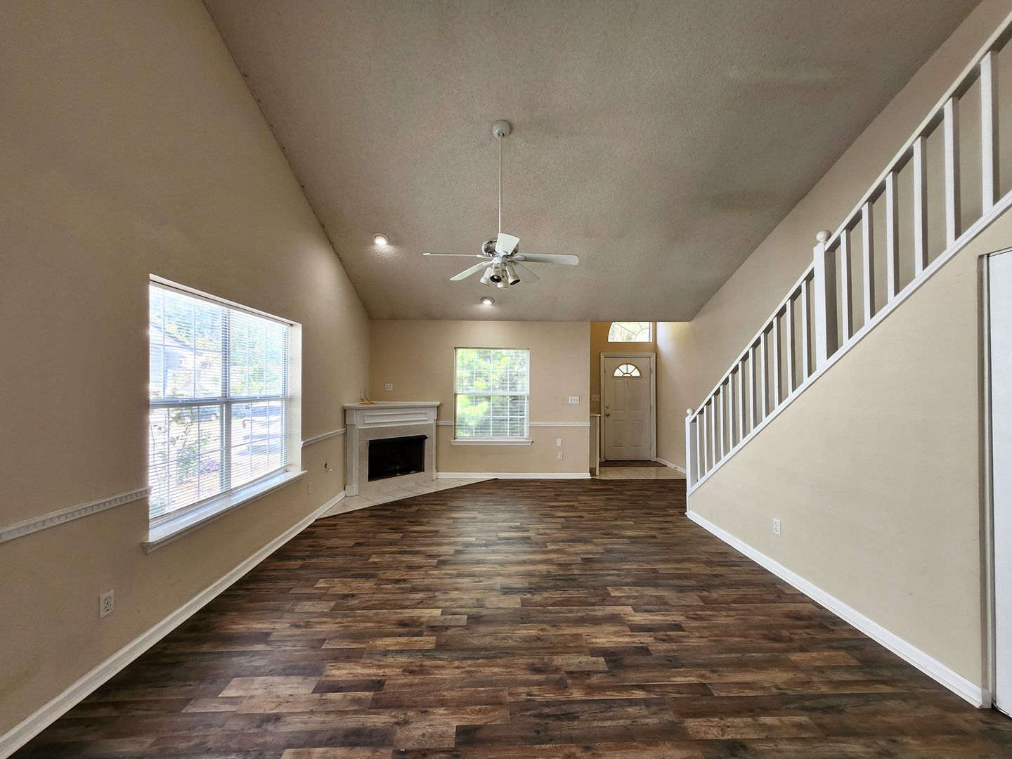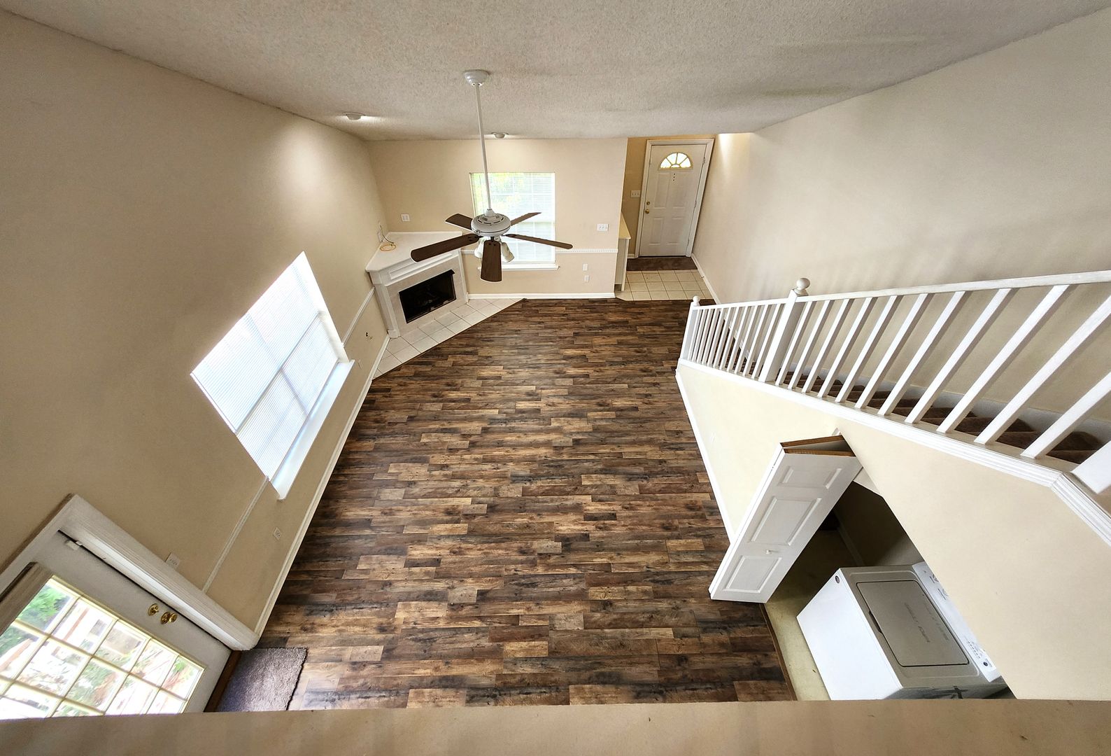Spacious 2-bedroom 2 bath town home in legacy park off E Mahan near Buck Lake Rd for rent June 5, 2026 for $1475 per month. Located within walking distance to restaurants, shopping, Movie theater and much more. This beautiful home has a lovely foyer that opens to a large living room/ dining room with wood floors, a fireplace, vaulted ceilings and an open staircase with an amazing loft. The fully equipped, open bar kitchen has great cabinet space and an extra pantry closet. One bedroom and bathroom is located downstairs, and the second bedroom/ bathroom is located upstairs. The downstairs bedroom has a door that opens to a large deck that overlooks the privacy fenced back yard. This unit includes washer and dryer plus lawn care.